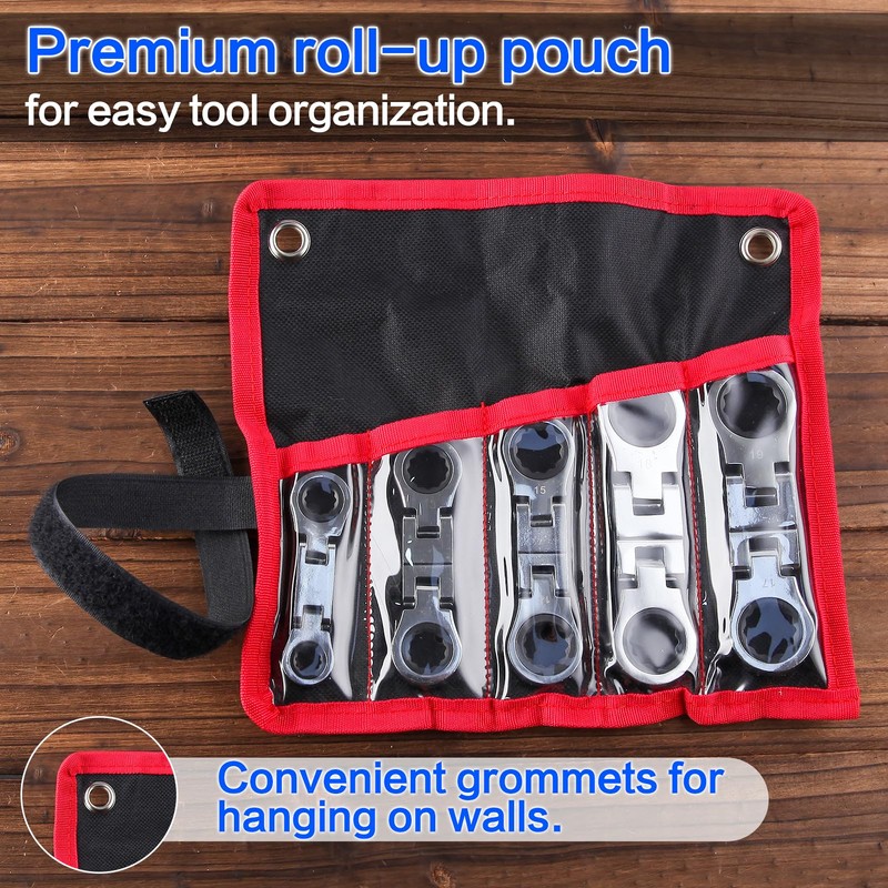 - 【DESIGN】180 degree rotating flexible heads of ratcheting wrench set allow you to apply leverage at any desired angle and get around obstructions; 72 tooth ratchet gear needs a minimum of 5 degree swing arc that is perfect for restricted, hard to reach work spaces.
