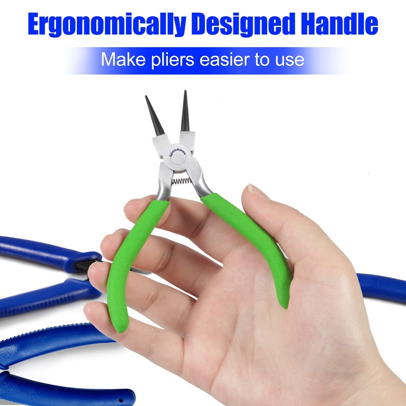 SPEEDWOX 6-Piece Mini Pliers Set Include 5" Bead Crimping Pliers 5" Flush Cut Wire Cutters 6" Ring Opening Pliers 4.5" Flat Nose Pliers 4.5" Needle Nose Pliers 4.5" Round Nose Pliers