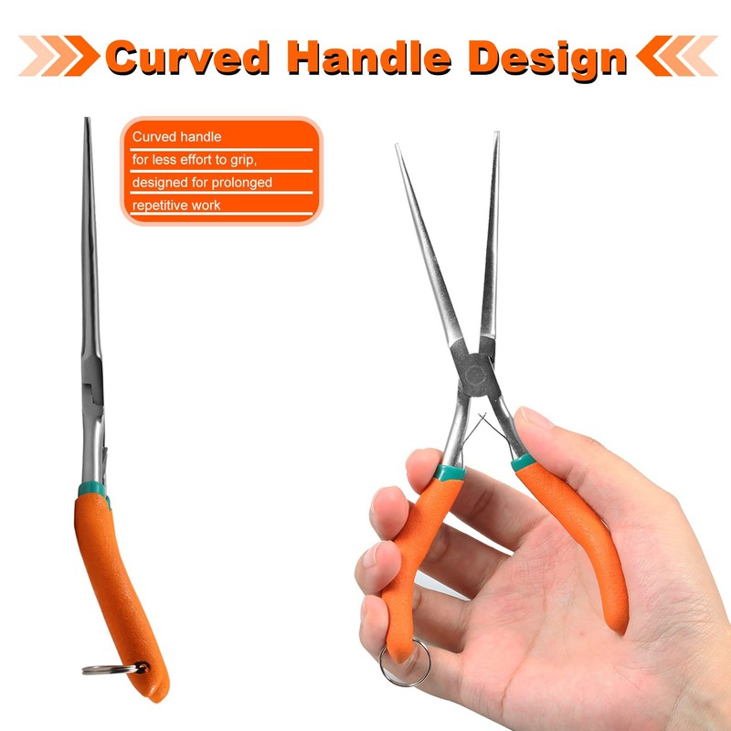 - 【USAGE】 Long-reach design combined with the compact size makes the pliers ideal for use in confined areas. A must-have tool set for automotive work, mechanics work, jewelry making, art and craft, and other hobby work.