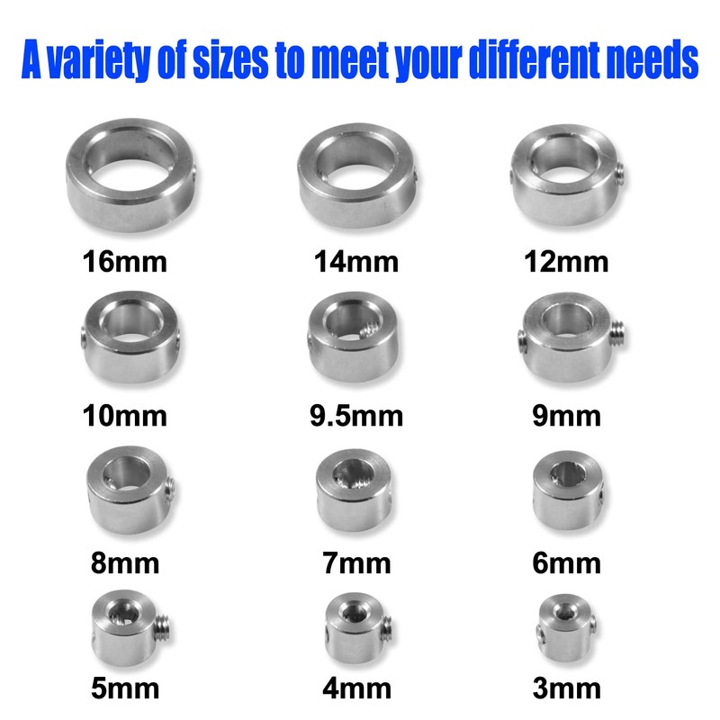 SPEEDWOX Drill Bit Depth Stop Collar Set Includes 12 Pcs 304 Stainless Steel Stop Bit Collar Set Drill Tool(3/4/5/6/7/8/9/9.5/10/12/14/16mm) and 2 Pcs Allen Wrench with Storage Box