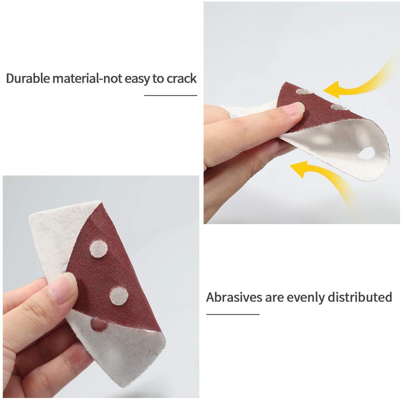 SPEEDWOX SPEEDWOX 50 Pcs Triangle Sanding Pads Hook and Loop 240 Grit Oscillating Sanding Pad 90mm 6 Holes Fit 3-1/2 Inches Oscillating Multi Tool Detail Sander Sandpaper Triangle Sanding Discs Sanding Tool
