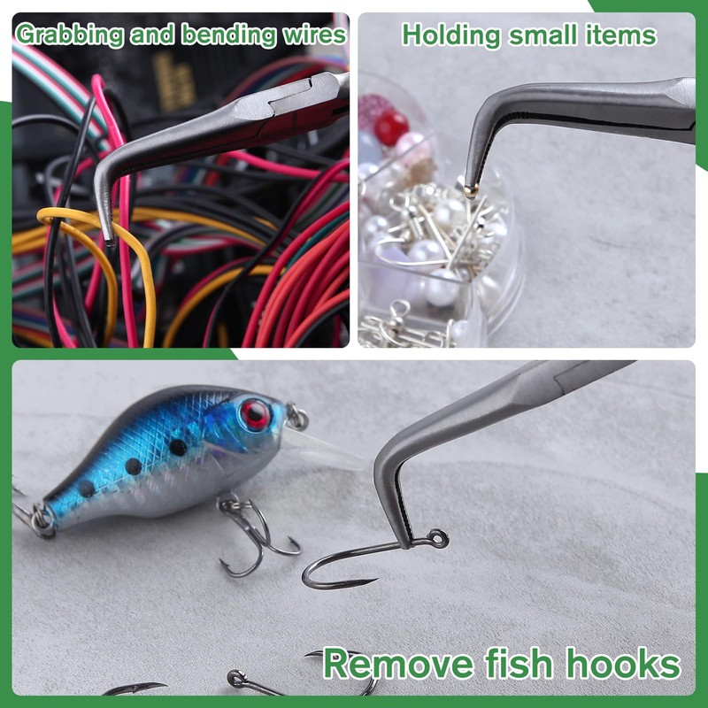 - 【Application】 With teething tips longer than normal curved radio pliers perfect for grabbing and bending wires and holding small items. Easy to remove hook without damaging the fish. An essential tool for jewelry makers, craft writers and electronics makers and cost-effective starter tools for beginning crafts