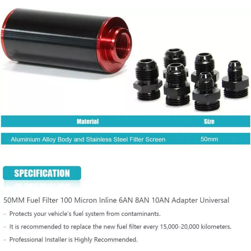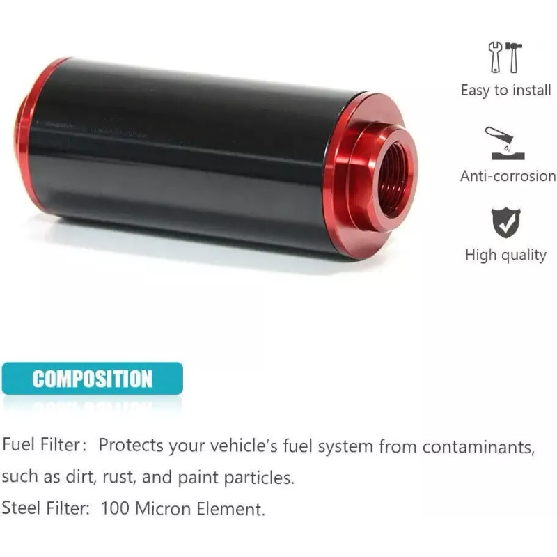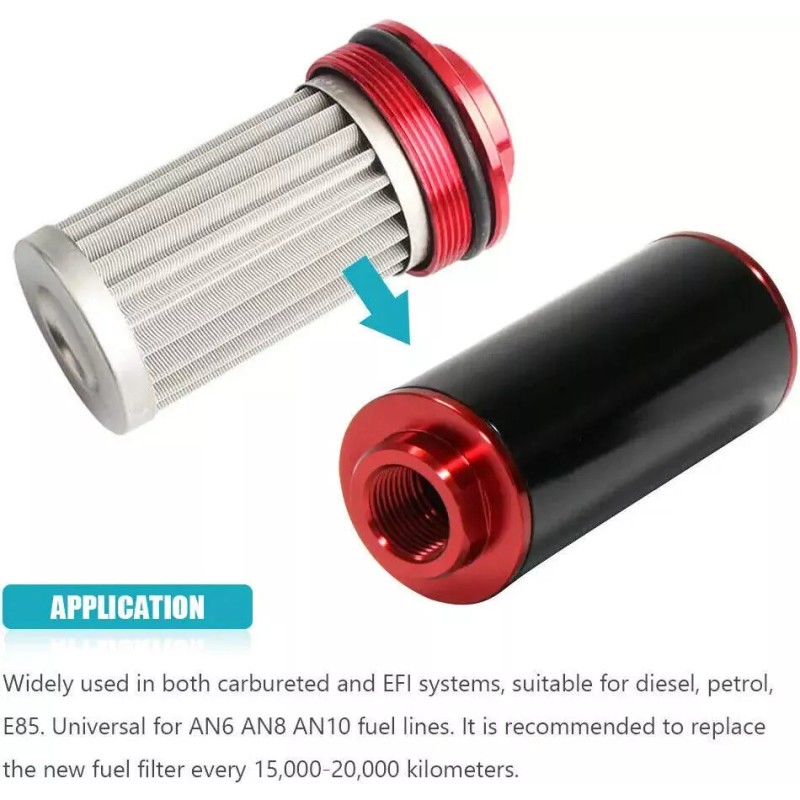 Universal: It fits most vehicles, 100 micron in-line filter can be connected to the 6AN/8AN/10AN fuel line, as long as the connector is suitable.