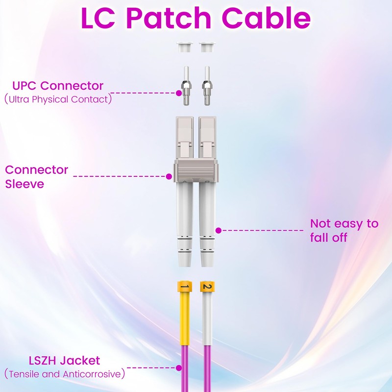 - 🔥Durable and Safe LSZH Jacket: The Low Smoke Zero Halogen (LSZH) jacket of the SpeedyCables OM4 fiber patch cable offers superior flame resistance, making it safe for indoor use by minimizing toxic smoke emissions.Magenta-colored OM4 identification, Ideal for use in environments where safety is a priority, such as server rooms and data centers.