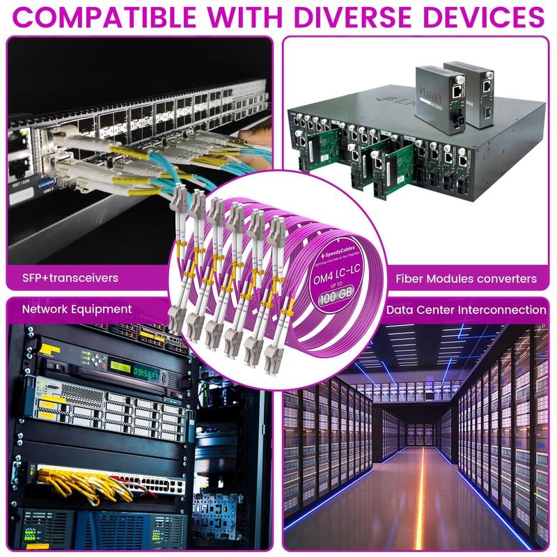 - ⚡ High-Speed Performance: SpeedyCables 8m/26ft OM4 LC-LC Fiber Optic Patch Cable features a high-quality 50/125μm multimode duplex fiber, designed for 10G, 40G, and 100G Ethernet networks. Offering superior transmission speeds of up to 100Gbps, it's ideal for high-bandwidth applications like data centers, telecom rooms, and cloud services.