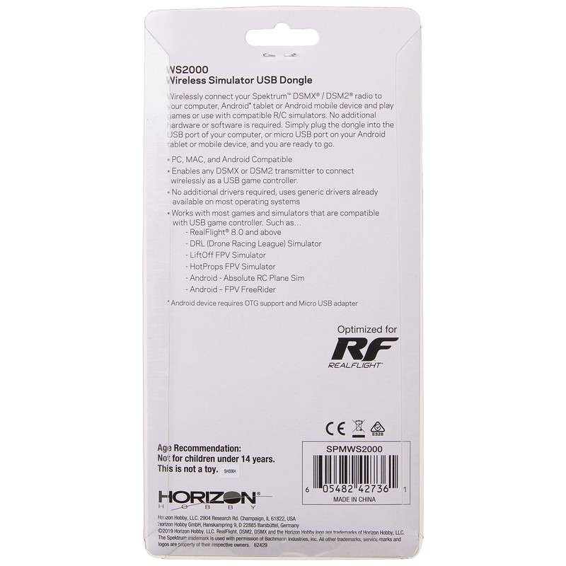 • Integrated bind button wirelessly connects any Spektrum DSMX/Dsm2 RC transmitter to PC, Mac or Android for use as USB game controller