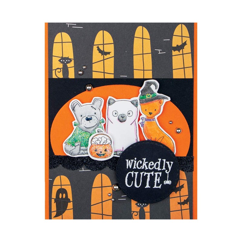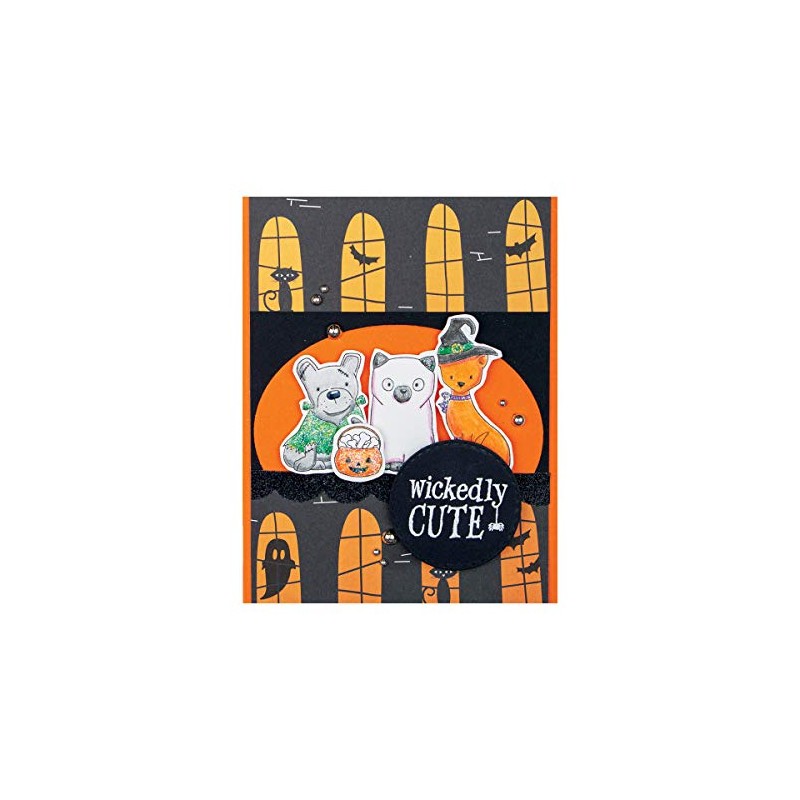 - Approximate Dimensions: Mummy: 1.9” x 1.9” (4.8cm x 4.8cm), Witch: 1.4” x 2.3” (3.6cm x 5.8cm), Franken Pug: 1.4” x 1.8” (3.6cm x 4.6cm), Ghost: 1.4” x 1.8” (1.8cm x 4.6cm), Pirate: 1.9” x 2.0” (4.8cm x 5.1cm), Treats: .81” x .86” (2.0cm x 2.2cm), Candy Corn: .43” x .47” (1.1cm x 1.2cm), Lollipop: .53” x .82” (1.3cm x 2.1cm), Vampy: 2.7” x 1.9” (6.9cm x 4.8cm), Web: 1.0” x .97” (2.5cm x 2.5cm), Candy: .60” x .37” (1.5cm x .94cm), Spider: .70” x .44” (1.8cm x 1.1cm), CUTE: 1.5” x 1.0” (3.8cm x 2.5cm), Purranormal: 1.3” x .59” (3