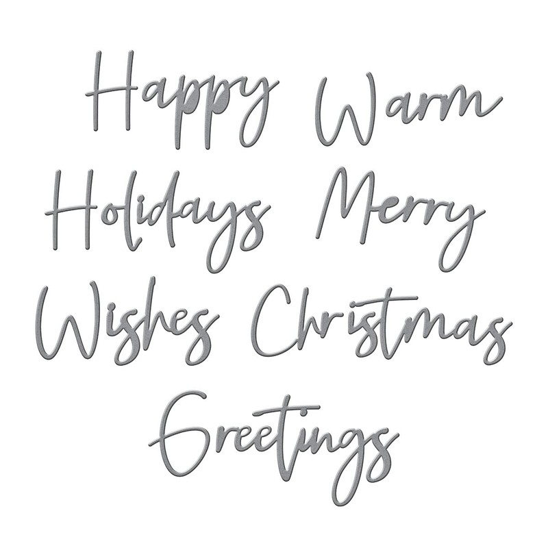 - Wishes: 1.60 x 0.77" 4.1 x 1.9 cm; Warm: 1.60 x 0.64" 4.1 x 1.6 cm; Christmas: 2.30 x 0.70" 5.8 x 1.8 cm; Merry: 1.40 x 0.78" 3.5 x 2.0 cm; Happy: 1.60 x 0.85" 4.1 x 2.1 cm; Greetings: 2.10 x 1.00" 5.3 x 2.5 cm; Holidays: 1.90 x 0.90" 4.8 x 2.3 cm
