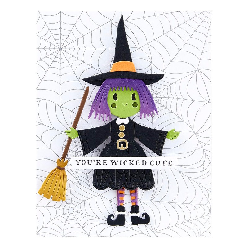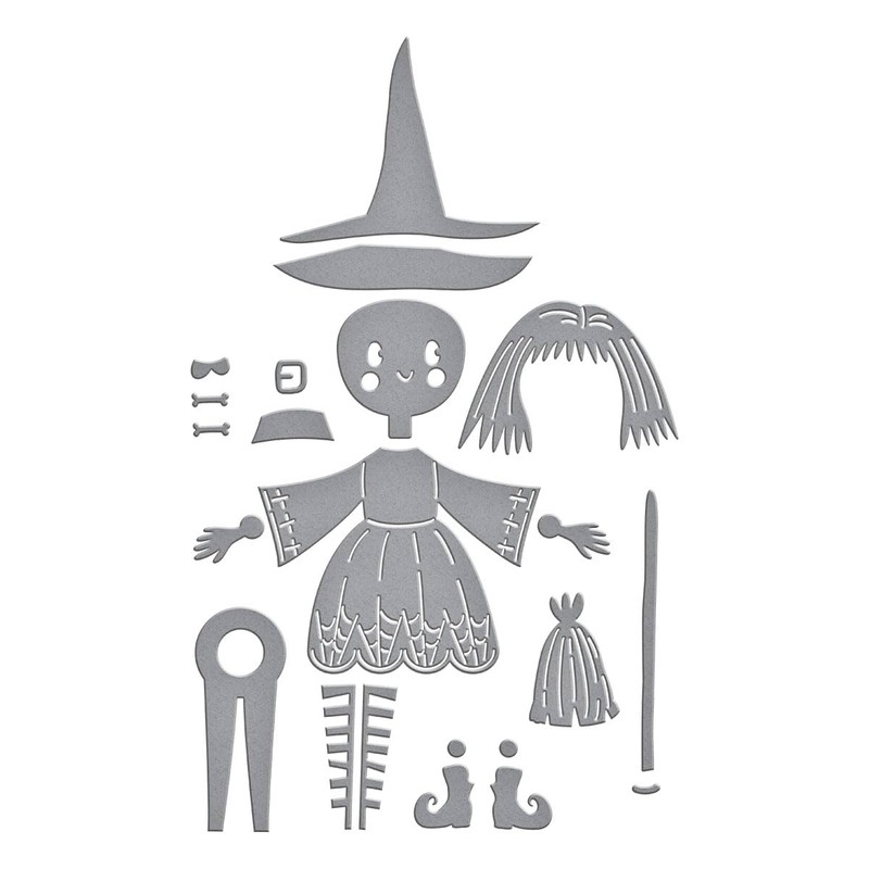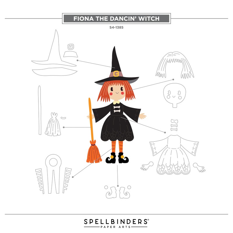 • This set of 13 thin metal cutting dies creates this cutie witch, Fiona! But wait, there’s more to her than cute... she's interactive with swinging legs. So fun!