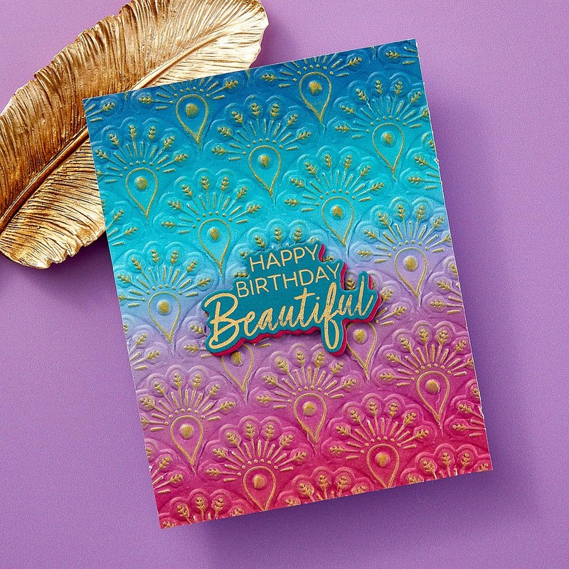 - Peacock Motif 3D Embossing Folder is a 5.50 x 8.50-inch embossing folder with an amazing design that mimics a peacock bird in a repeat pattern. What a fabulous addition to mix and match with the other sets in this collection!