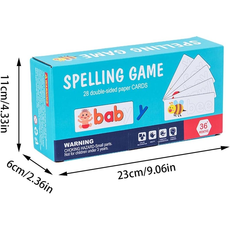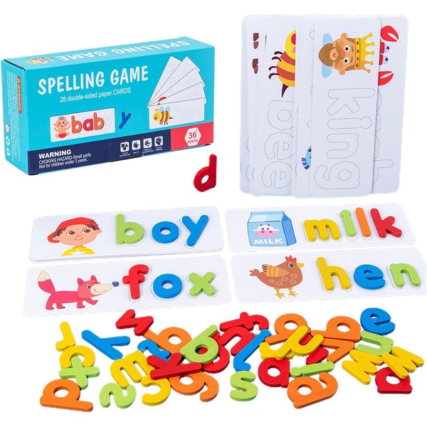 Spelling Game for Kids Ages 3-6 – 28 Double-Sided Flash Cards with Letters | Educational Toys for 4 Year Old Boys & Girls | Alphabet Puzzle, Phonics & Word Games | Gift for 3 4 5 Year Old