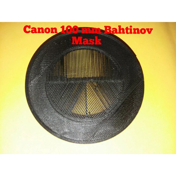 Bahtinov Focus Mask for Telescope - or Canon 100mm fits like lens external fit one piece slips over lenses. Perfect for Austro photography! If your camera or telescope has long lens , enough pixels and you enjoy the night sky, this is for you.