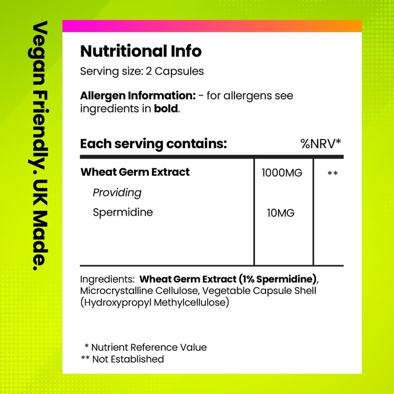 Spermidine 10mg Anti-Ageing Supplements | High Strength Wheat Germ Extract | Combat Wrinkles, PromoteThicker Hair Growth & Healthy Cell Function | 2-Month Supply | 120 Vegan Capsules | Fitimins
