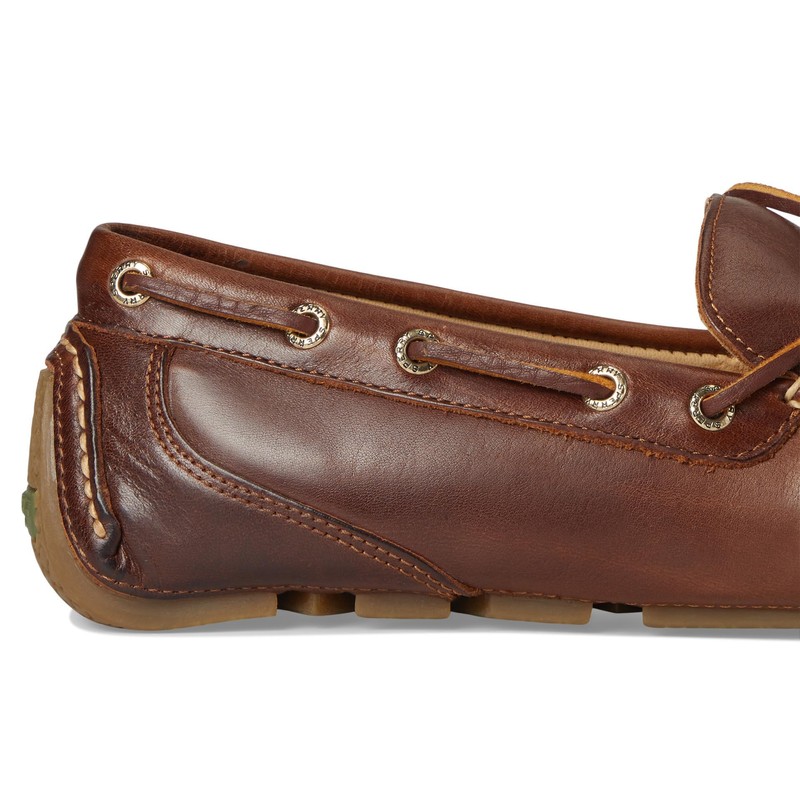 - Our one-eye luxury driving moc, with rich Gold Cup details and ultimate comfort Premium leather uppers in a genuine, hand-sewn construction feature rich lambskin linings and rawhide laces with our 360° Lacing System for a customized fit Shock-absorbing removable Ortholite footbed for all-day comfort, and non-marking, rubber driver outsole with molded Adaptive Wave-Siping for ultimate traction