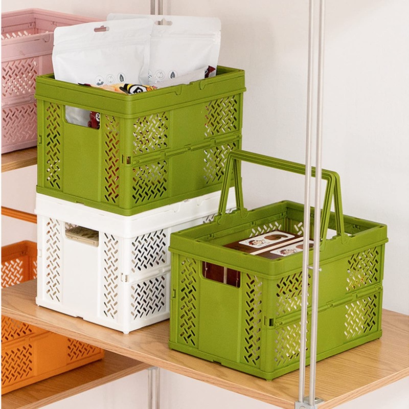 • Save Space: The handle and frame of the folding box are foldable, saving 3/4 of the space when not in use, and can be stacked together when in use to make full use of storage space.
