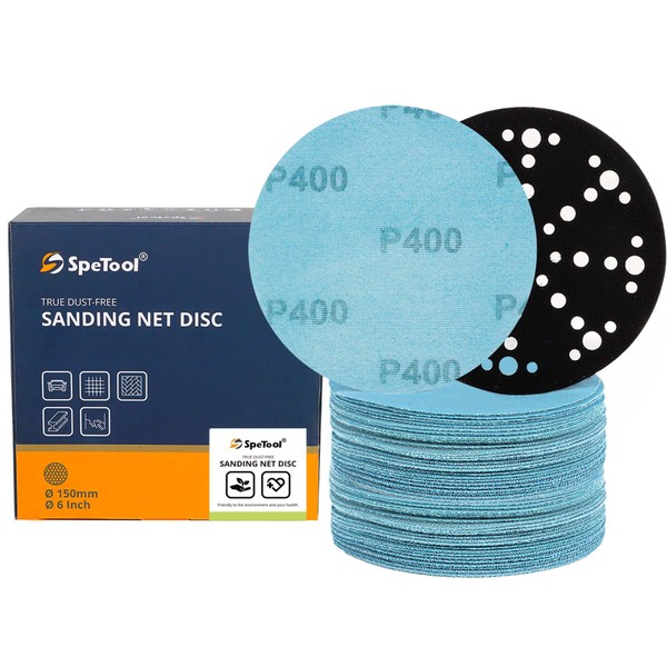 SpeTool Net Sanding Disc, Anti-Blocking 6 Inch Sanding Discs with Sander Pad Saver, 30 Pieces Sandpaper Discs, Grit 400, Dustless Hook and Loop Mesh Sandpaper for Wood, Drywall, Metal, Epoxy Resin