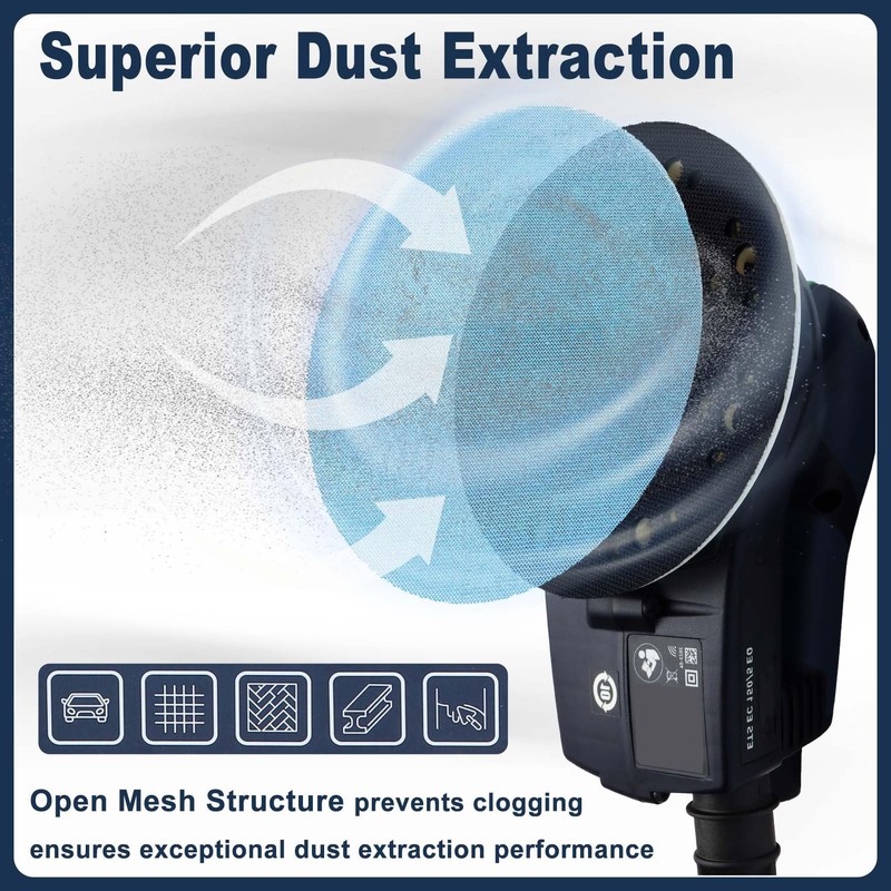 Increase your sanding work with the SpeTool sanding grid 150 mm Velcro, designed for ultimate efficiency and durability. These innovative sanding screens 150 mm have a unique mesh-like construction that significantly improves dust extraction and helps you maintain a clean workplace. Made from high quality ceramic and aluminum abrasive, our sanding discs offer exceptional durability and performance, making them ideal for polishing epoxy resin, body panels and various metal surfaces. Upgrade your tool set today with this extraordinary sanding grid 150 mm Velcro with Velcro fastener and discover the difference!