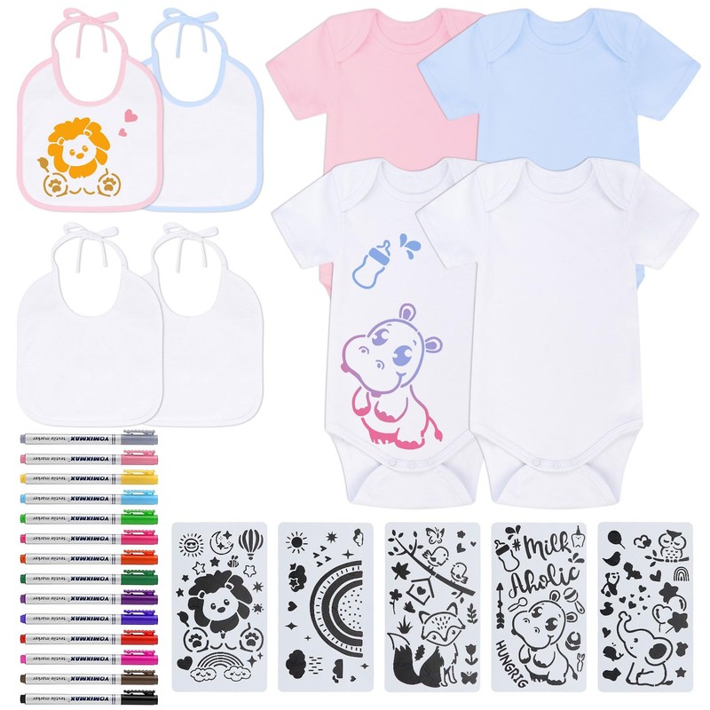 - Ideal for DIY parties and games: these baby bodies and bibs are perfect for baby shower games. Guests can design creative patterns and create unique artwork. Make your baby shower an unforgettable experience full of joy and creative expressions
