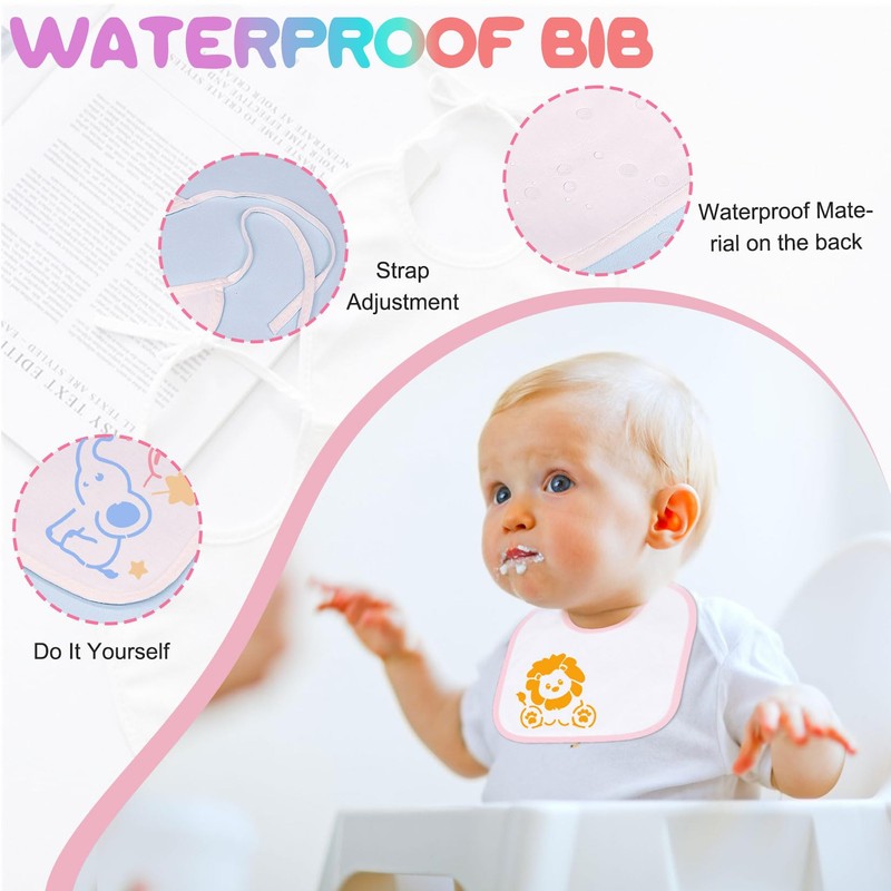 - High-quality materials for maximum comfort: the baby bodies are made of 100% high-quality cotton, soft, breathable and skin-friendly. The double layer baby bibs are made of a cotton layer with water resistant outer layer, which effectively prevents stains