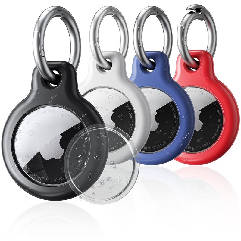 SPGUARD 4er Pack Air Tag Anhänger für Kratzschutz, wasserdichte Hülle für AirTag mit Edelstahl Keychain, Airtag Schlüsselanhänger, Airtag Case Cover mit Frontabdeckung, PC Schutzhülle für Airtag