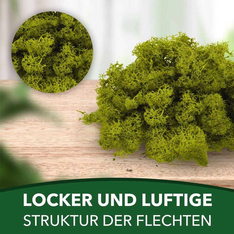 This reindeer moss has been cleaned, then freshly dried and preserved. This guarantees hygiene and long durability. No further care is required.