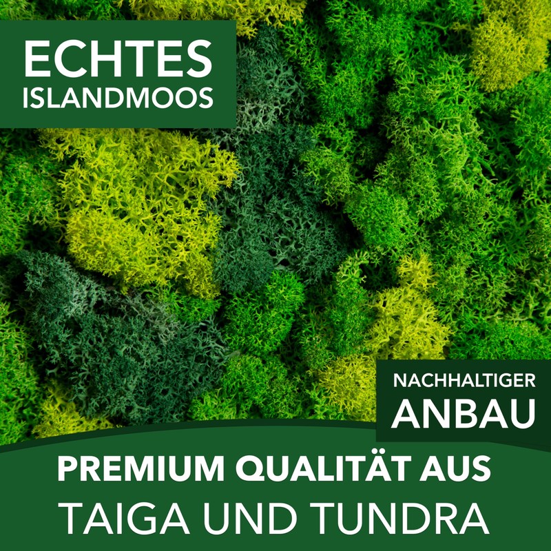 Our product is genuine, preserved (no longer living) and dyed reindeer moss. The natural structure is preserved. Thanks to the preservation, the lichen looks vibrant and remains permanently preserved.