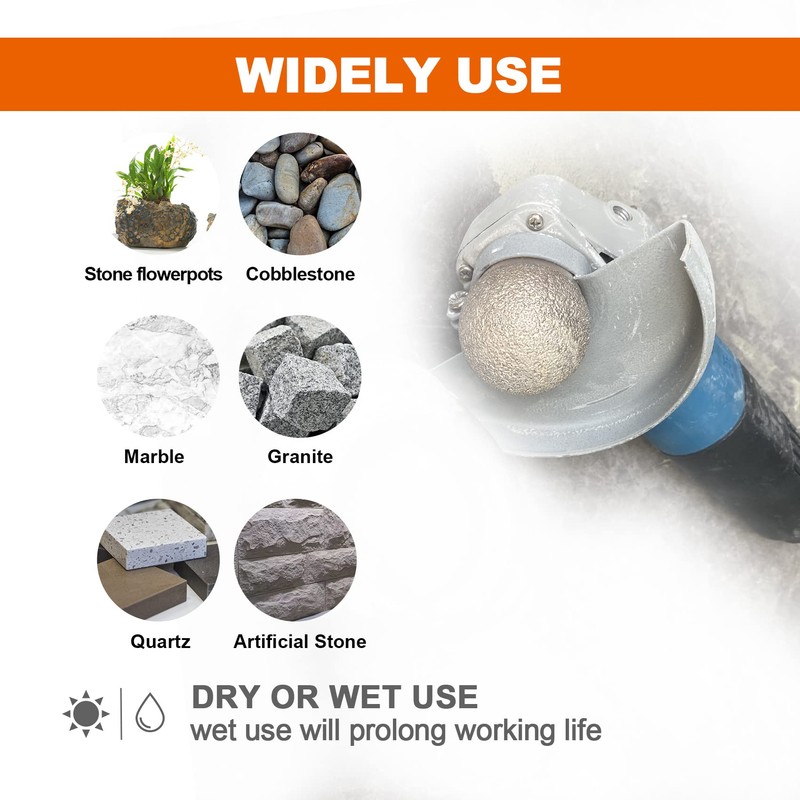 - √ Spherical Design on top for a variety of scenarios - grinding the inner arc of hard and brittle objects into various shapes, suitable for handicrafts such as irregular-shaped flowerpot stones, pebbles,natural Cobblestone,Granite,Marble Jade Rock etc.