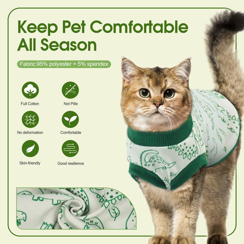 • CUTE DESIGN: Sphynx hairless cats shirt with cute dinosaur pattern perfect for everyday wearing, sleeping pajamas, photo taking, party costumes, holidays, festival occasion and etc.. Bright color sphynx cat clothes is also easy to match with other clothing and accessories, making your cat both fashionable and comfortable