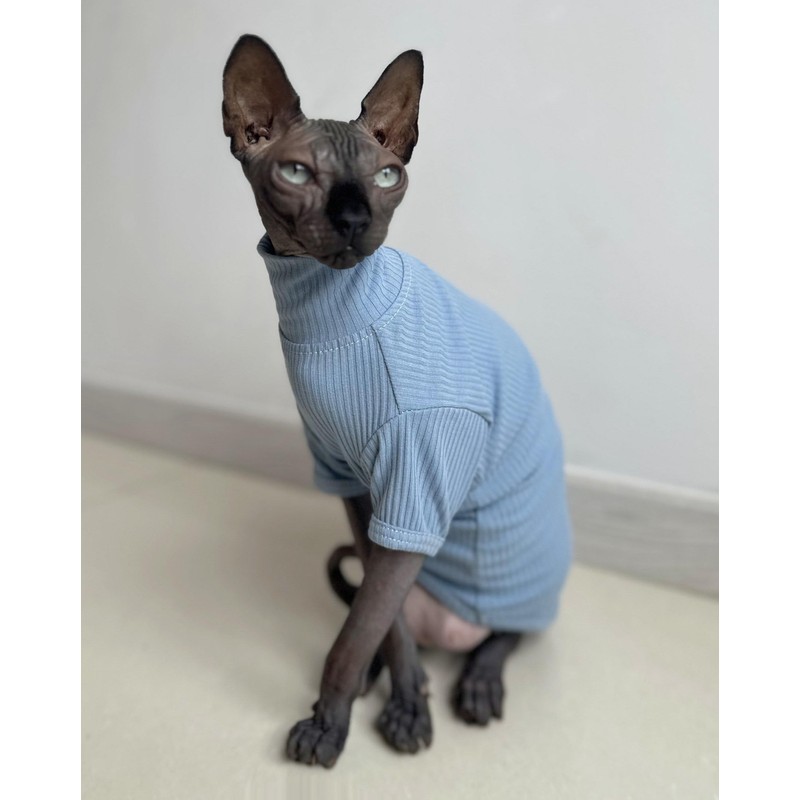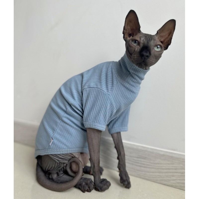 Sphynx Hairless Cats Shirt Cotton Cat Turtleneck Sweater Pullover Kitten T-Shirts with Sleeves Cat Pajamas Jumpsuit for Sphynx Cornish Rex, Devon Rex, Peterbald (Small (Pack of 1), Sky Blue)