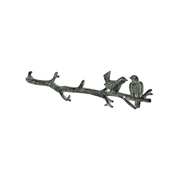 SPI Vintage Grey Cast Iron Lovebirds On a Branch Wall Hook Rack
