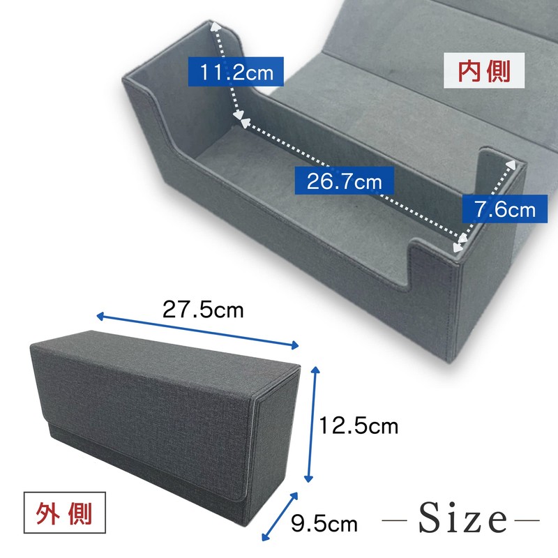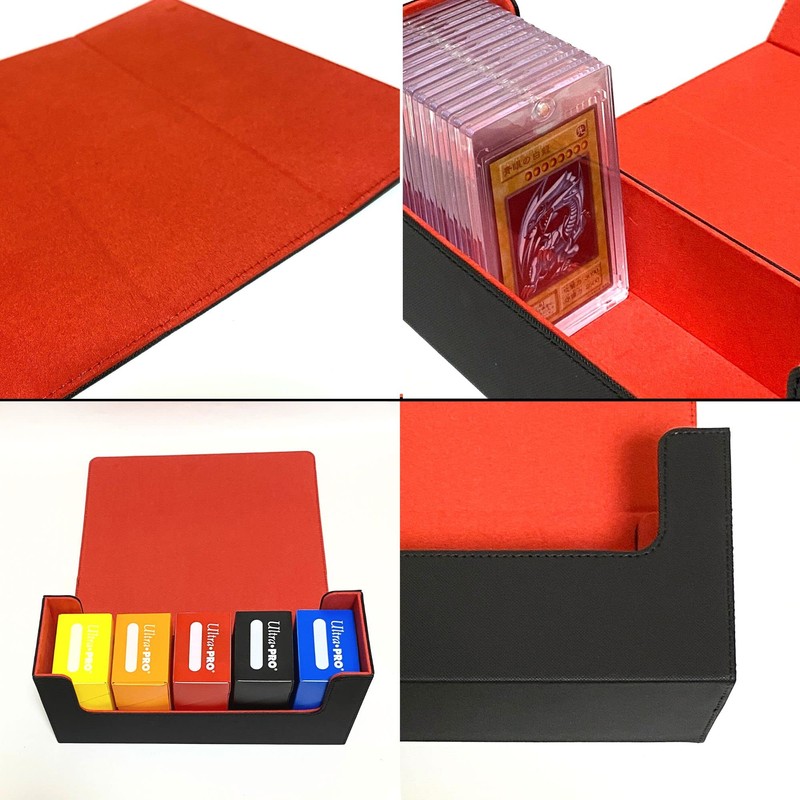 - The exterior is made of premium PU leather. The inside is made of nylon material. Soft to the touch, gently wraps your cards. Outer Dimensions: Approx. 10.6 x 3.7 x 4.9 inches (27 x 9.5 x 12.5 cm); Inner Dimensions: Approx. 10.6 x 3.0 x 4.4 inches (26.7 x 7.6 x 11.2 cm); Color: Black x Red