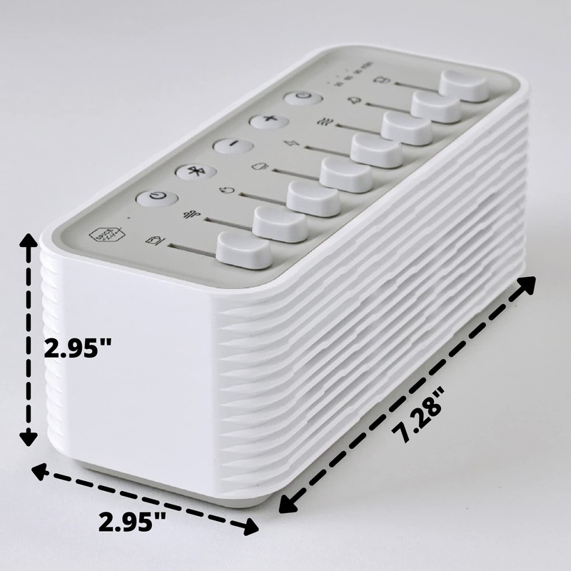 - SIZE AND INCLUSIONS - This sound machine measures 2.95" L x 7.28" W x 2.95" H. You can power this up by connecting it on a USB (Type-C USB included. Needs to be plugged in.)