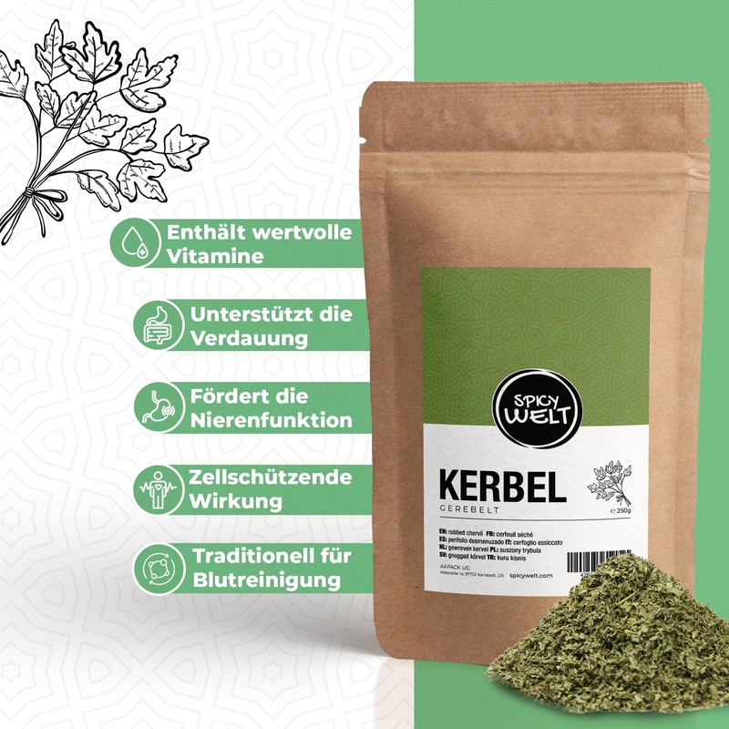 - Refine with spicy world – very easy: discover the light side of the herb kitchen! With our crushed chervil, you can make fine dishes effortlessly. We at Spicy Welt stand for quality and your satisfaction. Do you have questions or are you looking for inspiration? We are here for you! Cook with joy and finesse.