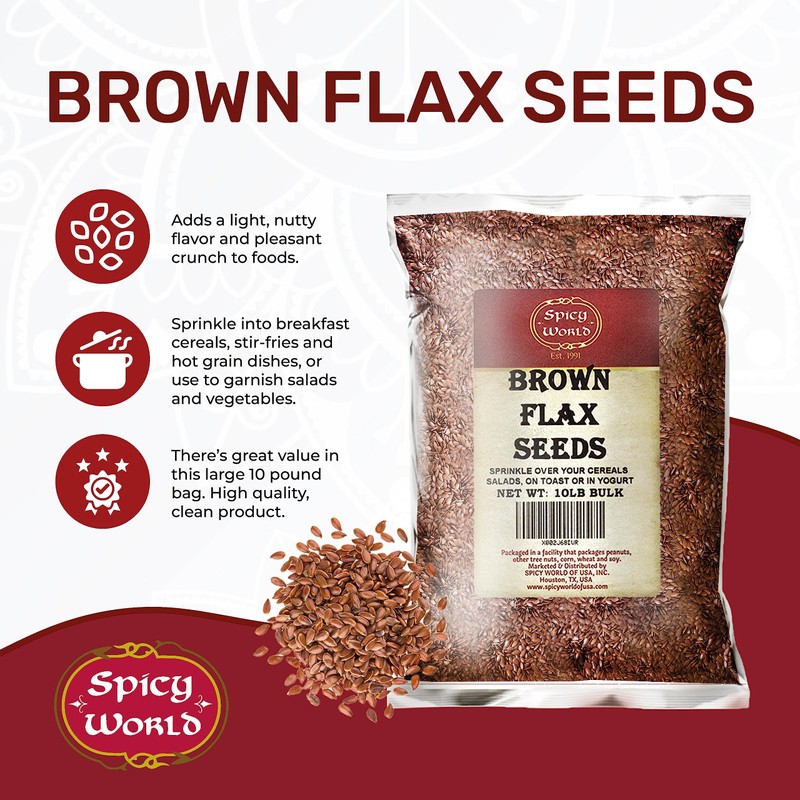 • Spicy World Brown Flaxseeds are a great value in this large 10 pound bag. High quality, clean product.