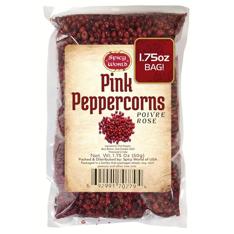 Spicy World Pink Peppercorns Whole 1.75Oz Bag - Steam Sterilized, Vegan, Premium Quality Whole Peppercorns