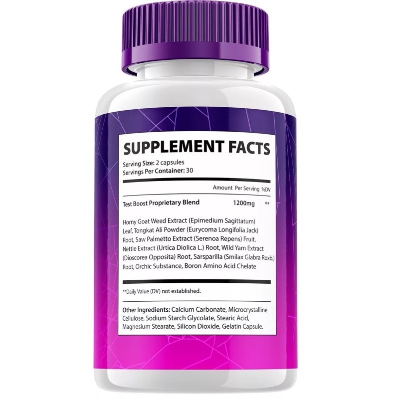 - Ingredients: Amino Acid, Boron, Calcium Carbonate, Gelatin, Magnesium Stearate, Microcrystalline Cellulose, Sarsaparilla (Smilax Ornata), Saw Palmetto, Silica (Silicon Dioxide), Sodium Starch Glycolate, Stearic Acid, Stinging Nettle (Urtica Dioica), Tongkat Ali (Eurycoma longifolia), Wild Yam (Dioscorea villosa)