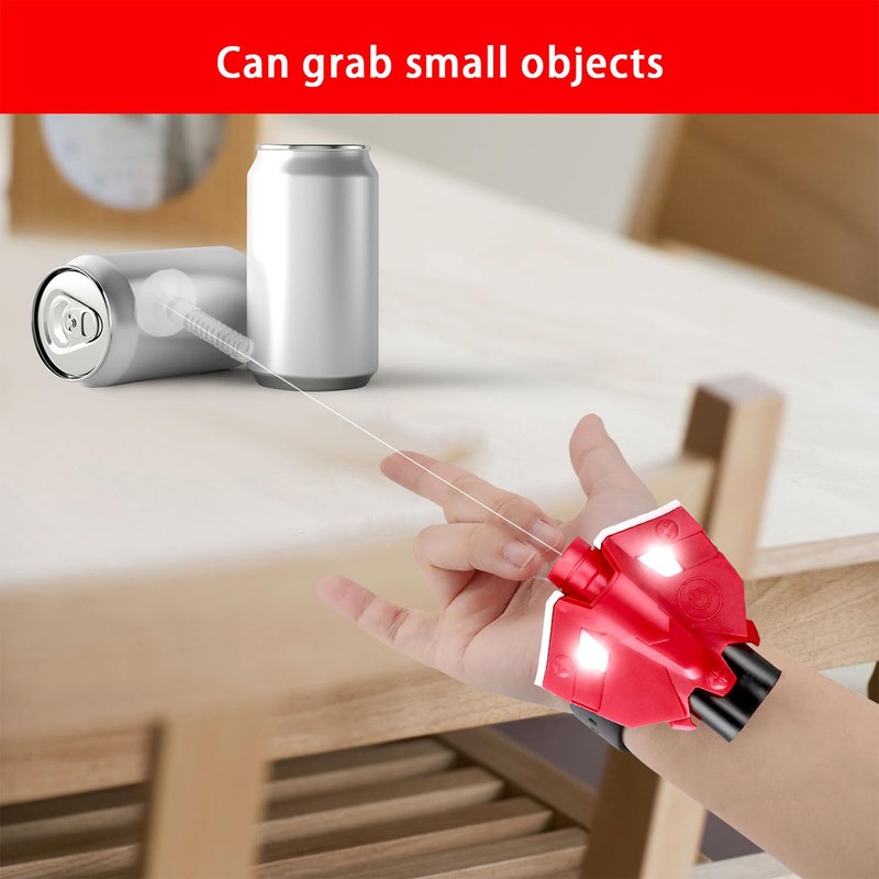 Simply press the launch switch to shoot the web shooter, and the head with a magnet can be adhered to iron products after being launched.