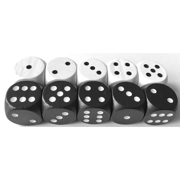 - Spieltz Game material: Giant dice for board games. Extra Large Wooden Dice for Board Games (Eye Dice / Score Cube)- 5 Black Dice + 5 White Dice. Other colours available. Size: 20 x 20 x 20 mm.