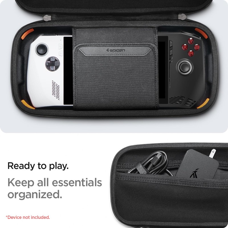 Spigen Rugged Armor Pro Designed for ASUS ROG Ally 2023 RC71L Case/ROG Ally X 2024 RC72LA Case/MSI Claw A1M Hard Shell Carrying Case with Pockets for Accessories and Original Charger Storage Bag