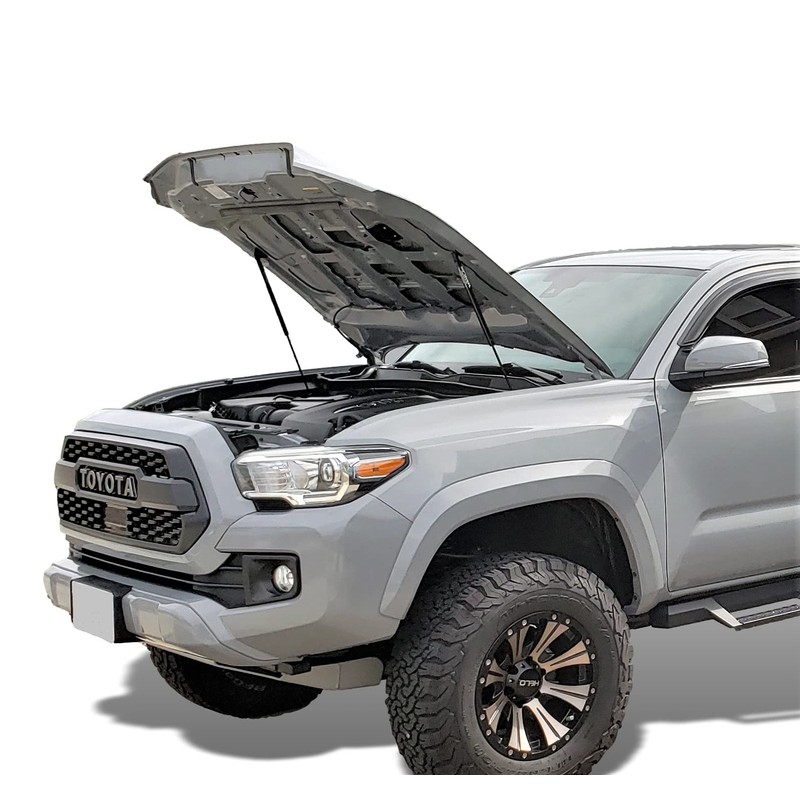 - COMPATIBILITY - Designed to work with all stock 3rd Gen Tacomas (2016 to present). Manual transmission models with fender-mounted clutch fluid reservoir require small spacers between the inner fender and the clutch reservoir to provide clearance for the gas springs. You can make your own spacers, or get the needed standoffs and high strength bolts directly from us. Details included in instructions.