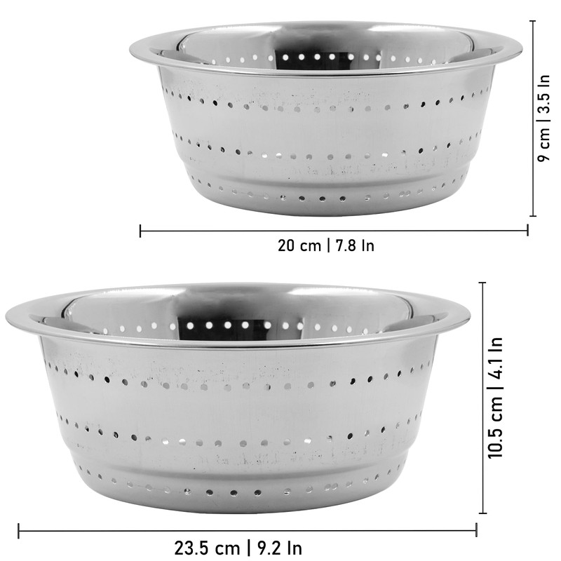 Spillbox Stainless Steel Colander | Strainer | Sieve with Pudding and Handle – Combo of 2 Different Sizes [Diameter: 23cm and 20cm]