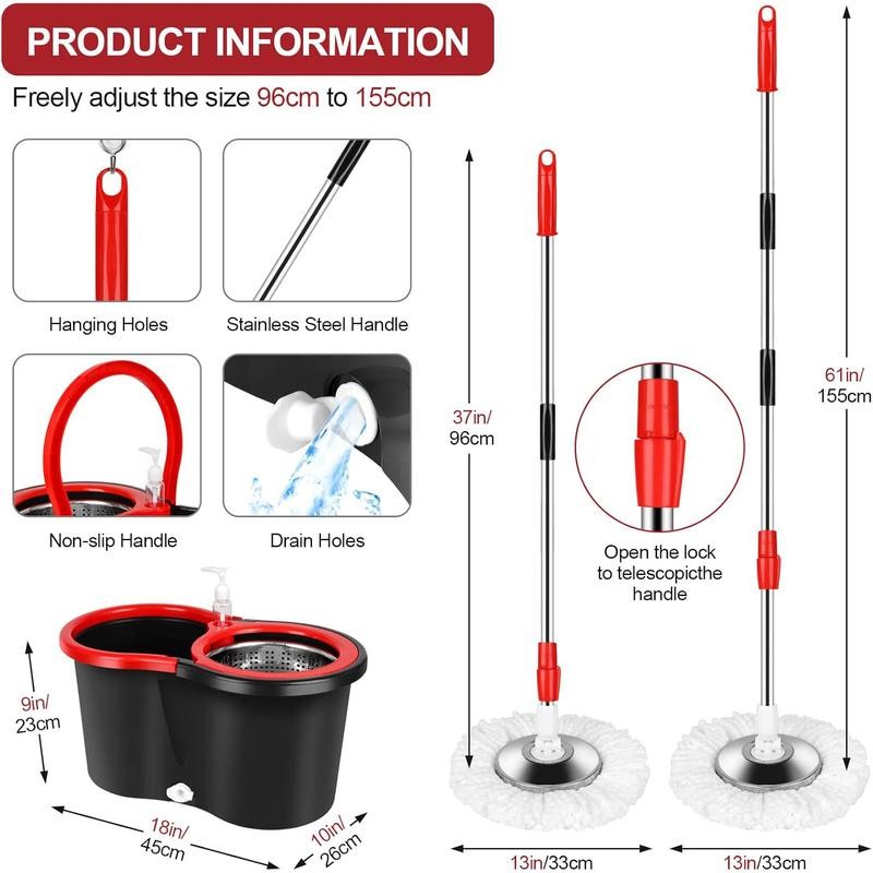 - Spin Mop and Bucket with Wringer Set, 360° Mop Bucket System with 3 Microfiber Mop Replacement Heads and 61" Stainless Steel for Floor Cleaning