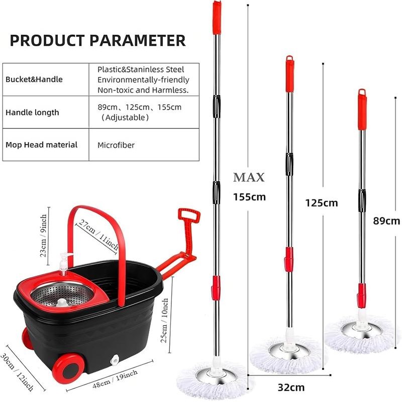 Customer Service: Each floor mop and bucket has undergone rigorous testing by our company. Product quality and customer satisfaction are our top priorities. Please feel free to contace us if you has any questions about our products. You can receive 24-hour customer service assistance and satisfactory solutions.