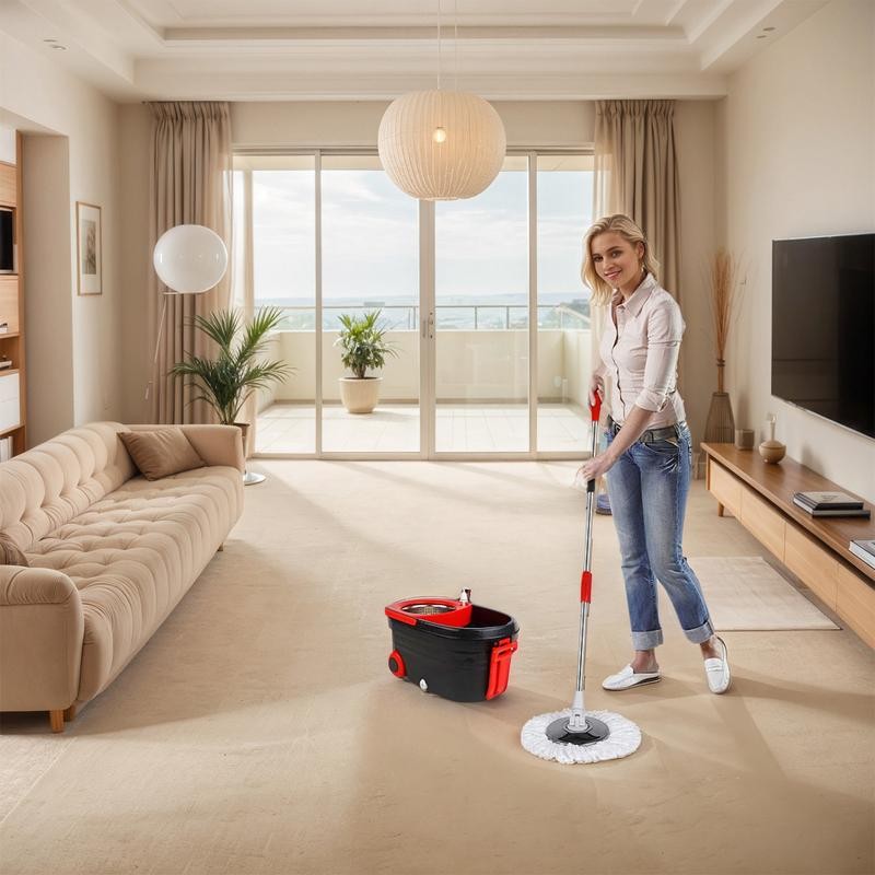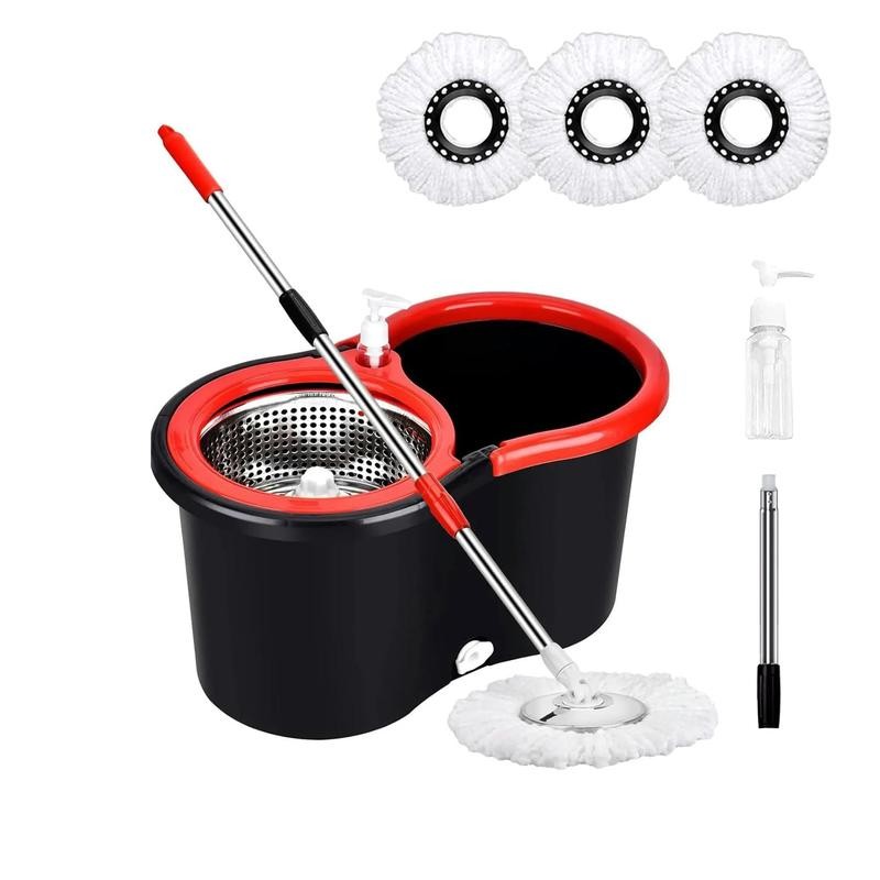 Thoughtful Design: The seamless combination of heavy-duty buckets and rotating chambers effectively removes dirt and excess moisture from the mop head, making it an excellent choice for deep cleaning or daily use. In addition, there is a drainage hole and rubber plug that can drain water faster without dirtying the floor.