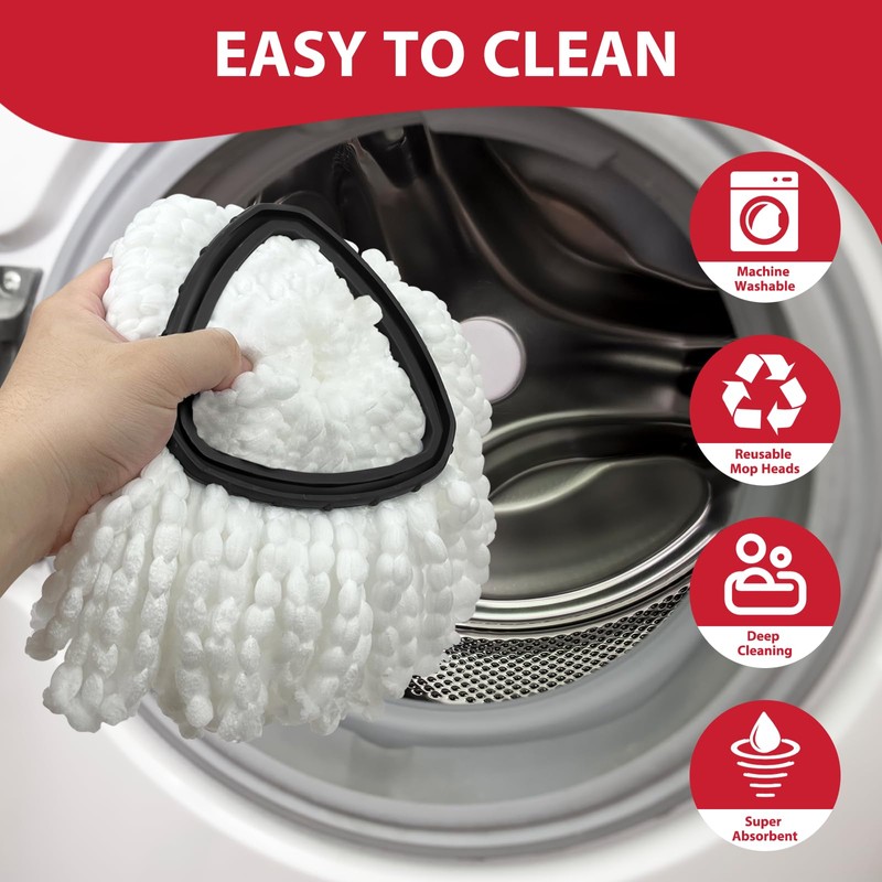 • [SUPERIOR CLEANING POWER] -The spin mop replace head feature 100% premium microfiber, effortlessly trapping dust, dirt and grime from hardwood, tile, laminate, marble, and vinyl floors. Machine washable for repeated use with streak-free results.