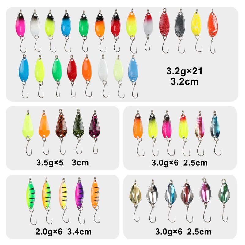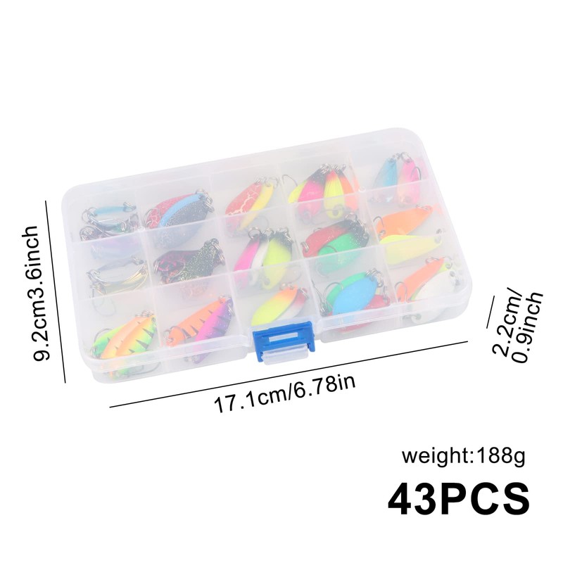 • Portable and easy to use: wobbler set contains 43 spinner baits. These baits weigh only 2-3.5 g. A variety of sizes are available and different weights can make your casting more accurate and make fishing easier. All baits are stored in separate and assorted compartments in the box, which are safe and portable. It is very suitable for beginners.
