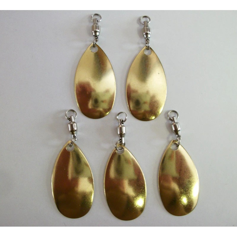 Spinnerbait City 5 SPINNER BLADES INDIANA SMOOTH BRASS #5 w/BB SWIVEL 1&3/8" long