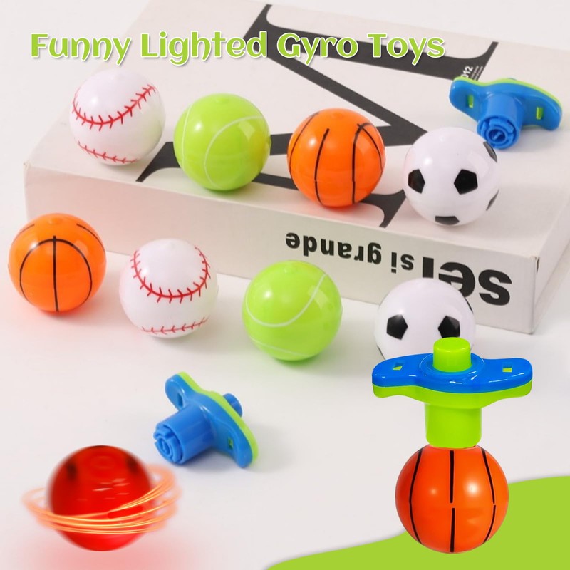 - Luminous spinning top children: the party bag children's birthday set contains 8 spinner toys and 2 handles. Game spinning tops for children are available in four styles basketball, football, tennis and baseball. 2 pieces for each style.