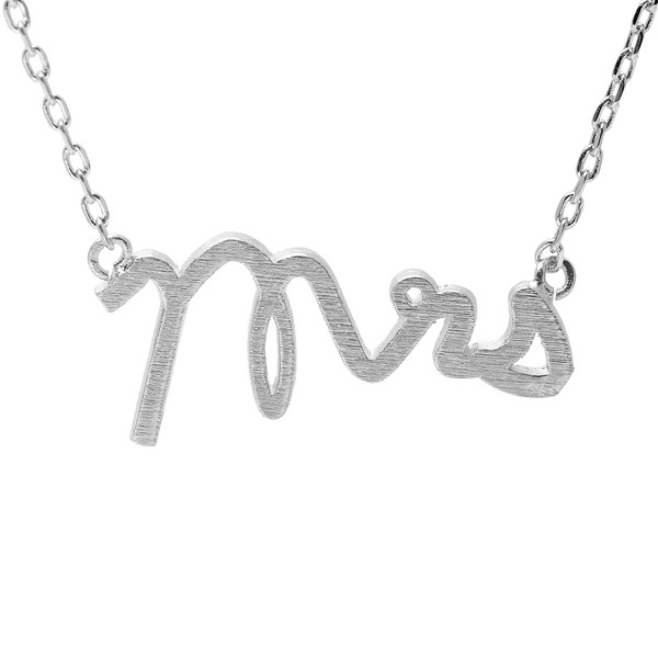 Spinningdaisy Handcrafted Brushed Metal Mrs Script Necklace Silver
