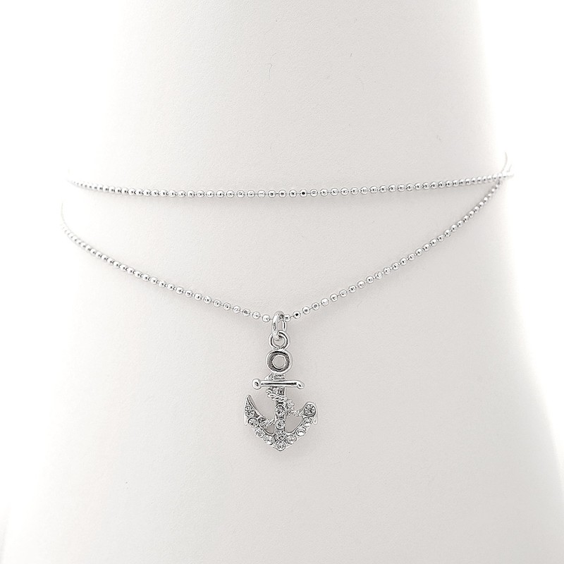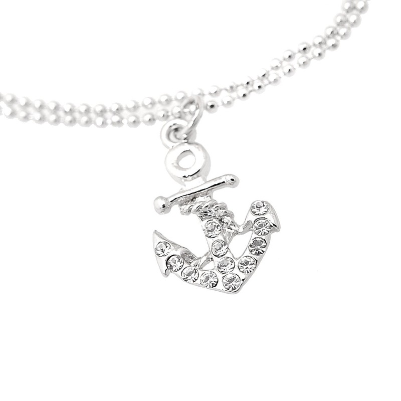 Spinningdaisy Silver Plated Double Layer Crystal Anchor and Buoy Anklet Ankle Bracelet (Anchor)